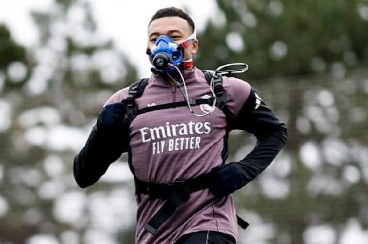 《邮报》最新报道,皇马球员训练时佩戴了一款特殊的蓝色面罩,外形酷似模拟高原训练的氧气设备,但二者实则截然不同。这一创意来自皇马体能主管安东尼奥-平图斯,他主要负责球员的身体状态管理。据悉,这款面罩用于压力测试,平图斯在皇马电视台采访中表示,其设计目的是“测定球员的有氧与无氧阈值,以及当前功率水平”。这款名为CosmedK5的面罩,能让工作人员精准测量球员的最大摄氧量(VO2max),即人体在高强度